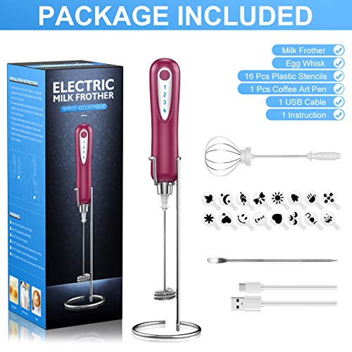 Great for Coffee Lover: The milk foam maker is lightweight and has ergonomically designed soft touch handle. The frother for milk coffee is so handy and useful that can for your friends and family too as gift. Let them enjoy the interest and convenience of making chocolate or cappuccino at home. (Package come with 1 milk frother, 1 extra egg whisk head, 16 coffee stencils, 1 coffee pin, 1 usb cable, 1 instruction) Any issue, please feel free to contact us via message.