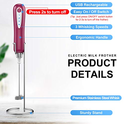 USB Rechargeable for Home & Travel: Unlike other battery-operated frothers, XIMU rechargeable milk frother build-in rechargeable battery with updated technology, no need to replace battery frequently. Ideal for coffee, latte, cappuccino, matcha, hot chocolate.